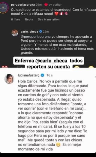 Razón por la cual, Carlos Checa habría manifestado su enojo hacia Luciana Fuster, llegando al extremo de generar una pólemica negativa de ella en las redes sociales.